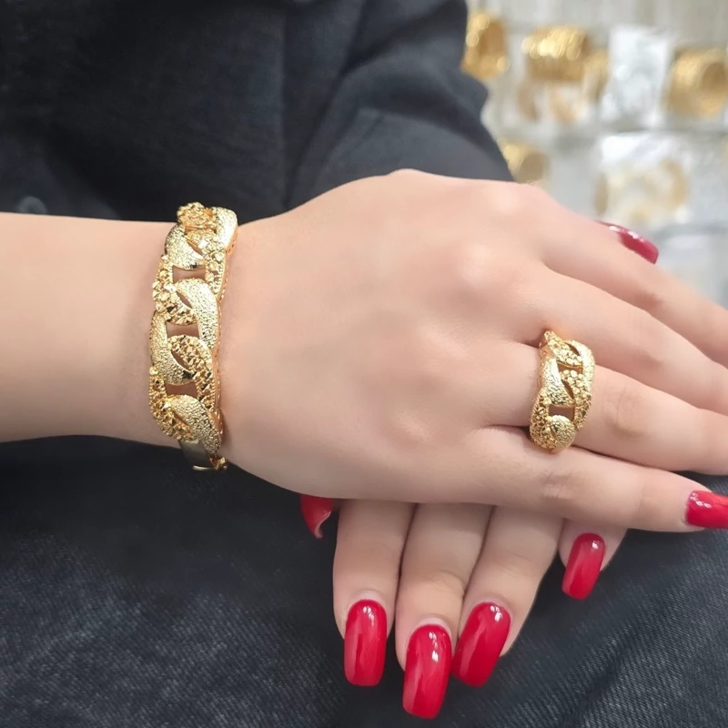 ست دستبند و انگشتر بحرینی فری سایز آبکاری طلا