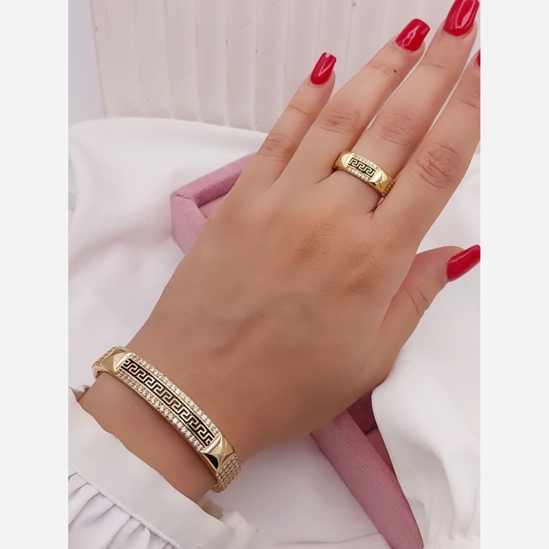 ست دستبند انگشتر ورساچ سیاه قلم نگینی