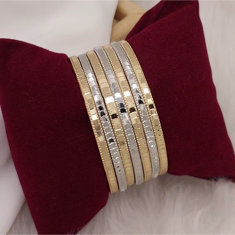 #النگو 3میل طلاروس دورنگ جدید😍 ♦️رنگثابت ♦️بدون حساسیت تضمینی😍 ♦️حداقل 5سال دوام رنگ در سخت ترین شوینده ها🤫 ♦️کپی شدهاز ویترینطلافروشیا🤗 ♦️سایز زنانه.1,2,3,4,5 ♦️قیمت پک 7تایی میباشد