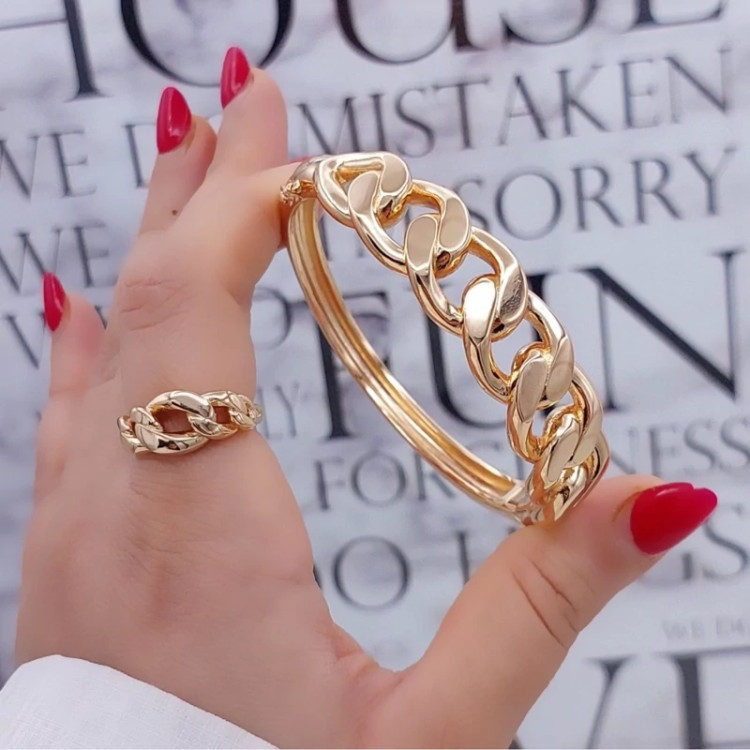 #ست دستبند انگشترکارتیه جدید😍😍 ♦️رنگ ثابت ♦️بدون حساسیت ♦️آبکاری طلا ♦️کاملا کپی شده از طلا ♦️دارای قفل نگهدارنده دستبند ♦️سایز انگشتر فری سایز میباشد 🔴سایز دستبند مناسب2و3
