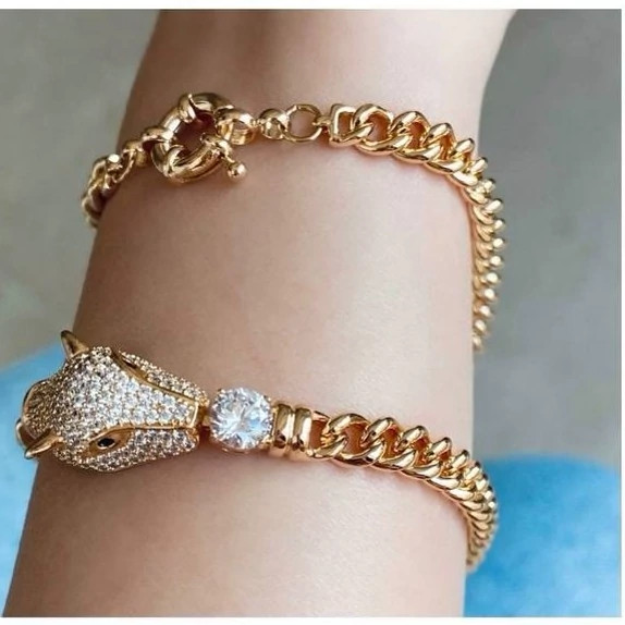 دستبند طرح پلنگ نگیندار برند ژوپینگ مشابه نمونه طلا زنجیر طرح کارتیه Zivaran