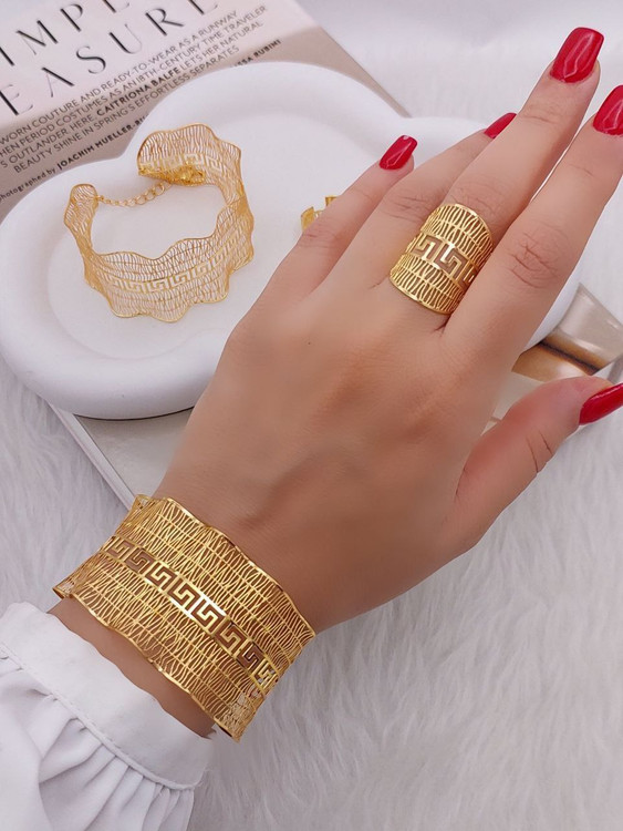 ست دستبند و انگشتر بحرینی فری سایز آبکاری طلا